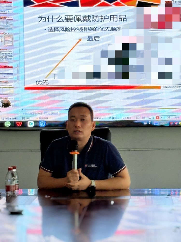 培训伊始,张智伯安全总监以理论结合实际的方式展开授课:首先系统阐释了职业病健康安全的核心定义与法规要求,帮助员工建立基础认知;随后深入剖析了公司涉及的常见的职业危害因素(如粉尘、噪音、化学试剂等)及其潜在风险;最后详细讲解了各类劳动防护用品的分类标准、选用原则,并通过现场实操演示,直观展示了口罩、护目镜、防护服等用品的正确佩戴与检查方法。期间穿插的真实事故案例分析,让与会人员深刻认识到安全防护的重要性,进一步掌握了科学有效的风险规避与应急处置技能。