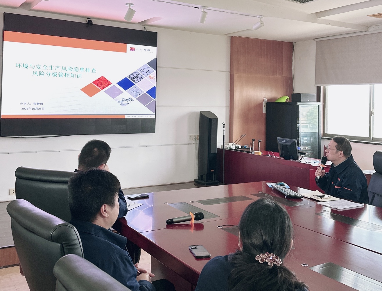 为筑牢安全防线,江苏梦得新材料科技有限公司于2025年10月25日下午,在总部三楼会议室举行了10月份环境与安全生产风险隐患排查风险分级管控知识培训。